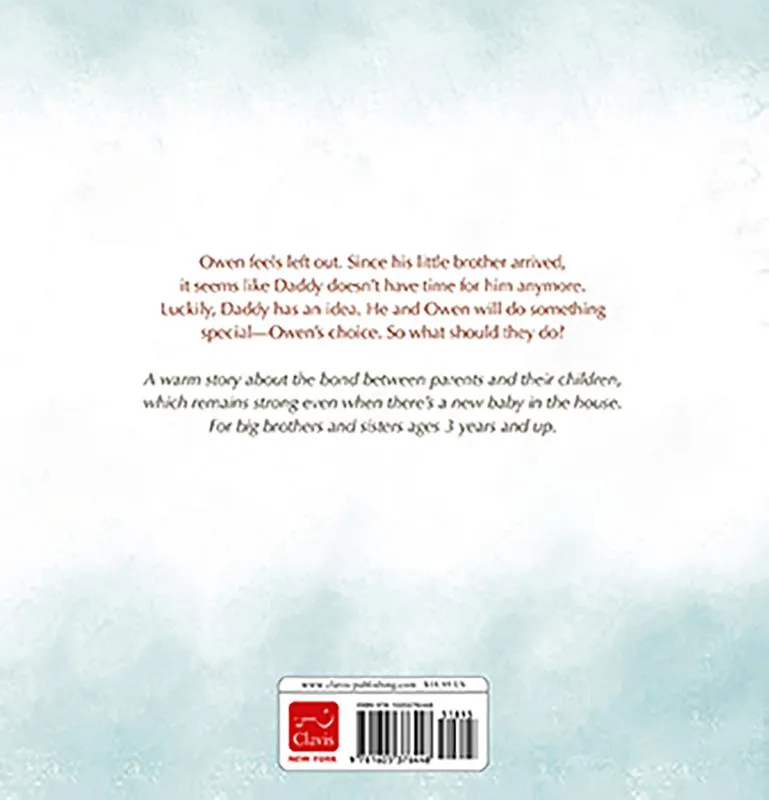 Sinds Owen een broertje heeft hebben zijn ouders minder tijd voor hem. Gelukkig neemt zijn papa hem mee voor een leuk dagje met z’n tweeën. Prentenboek met gekleurde illustraties. Vanaf ca. 3 jaar.