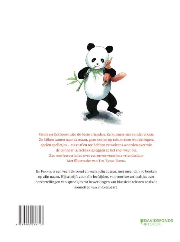 Panda en Eekhoorn zijn de beste vrienden. Ze kunnen niet zonder elkaar. Ze kijken samen naar de maan, gaan samen op reis, maken wandelingen, spelen spelletjes… Maar af en toe hebben ze weleens woorden over wie de winnaar is. Gelukkig leggen ze het snel weer bij.Zes voorleesverhalen over een onverwoestbare vriendschap.Met illustraties van Thé Tjong-Khing.Ed Franck is een veelbekroond en veelzijdig auteur, met meer dan 70 boeken op zijn naam. Hij schrijft voor alle leeftijden, van voorleesverhaaltjes over hervertellingen van sprookjes tot bewerkingen van klassieke teksten zoals de sonnetten van Shakespeare.