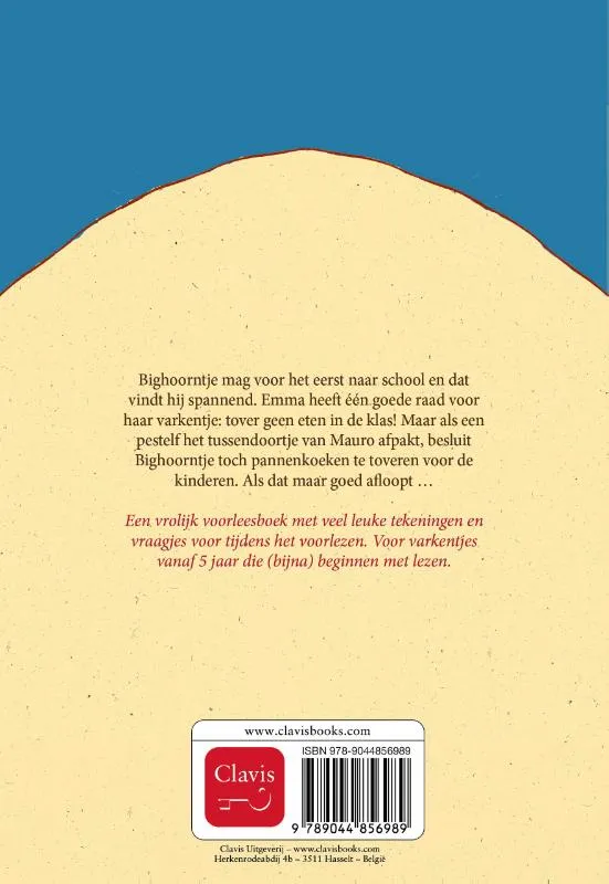 Bighoorntje mag voor het eerst naar school en dat vindt hij spannend. Emma heeft één goede raad voor haar varkentje: tover geen eten in de klas! Maar als een pestelf het tussendoortje van Mauro afpakt, besluit Bighoorntje toch pannenkoeken te toveren voor de kinderen. Als dat maar goed afloopt …