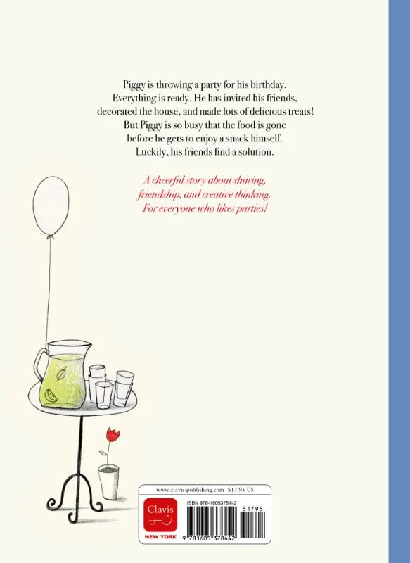 Varkentje is jarig en geeft een feest. Hij is echter zo druk bezig dat al het eten op is als hij zelf iets wil smikkelen. Zijn vrienden bedenken een oplossing. Prentenboek met illustraties in kleur. Vanaf ca. 4 jaar.