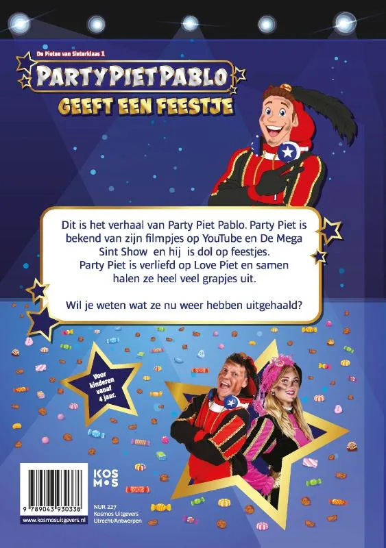 Love Piet en Party Piet Pablo zijn de populairste Pieten van Nederland en België. Ze zijn beroemd van hun hits ‘De Pieten Sinterklaas Move’ en ‘Pietenliefde’, hun theatershows, de Mega Sint Serie op YouTube, en de Grote Sinterklaas Film. In de kinderboekenserie beleven ze steeds vrolijke avonturen om samen met je peuter of kleuter extra te genieten van het sinterklaasfeest. Ideaal cadeau voor in de schoen!