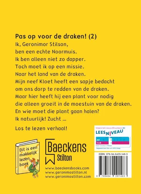 Ik, Geronimor Stilson, ben een echte Noormuis. Ik ben alleen niet zo dapper. Toch moet ik op een enge missie. Waarom? Mijn neef Kloet is uitvinder. En om ons dorp te redden van de draken wil hij een smerig geurtje maken. Maar hier heeft hij een plant voor nodig die alleen in het land van de draken groeit. En wie moet dat gaan halen? Ik natuurlijk! Ik moet op missie naar het land van de draken! Als dat maar goed gaat … Los te lezen verhaal!