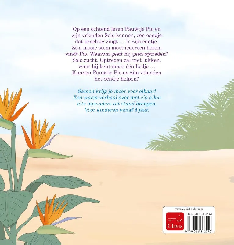 Op een ochtend leren Pauwtje Pio en zijn vrienden Solo kennen, een eendje dat prachtig zingt … in zijn eentje. Zo’n mooie stem moet iedereen horen, vindt Pio. Waarom geeft hij geen optreden? Solo zucht. Optreden zal niet lukken, want hij kent maar één liedje … Kunnen Pauwtje Pio en zijn vrienden het eendje helpen?