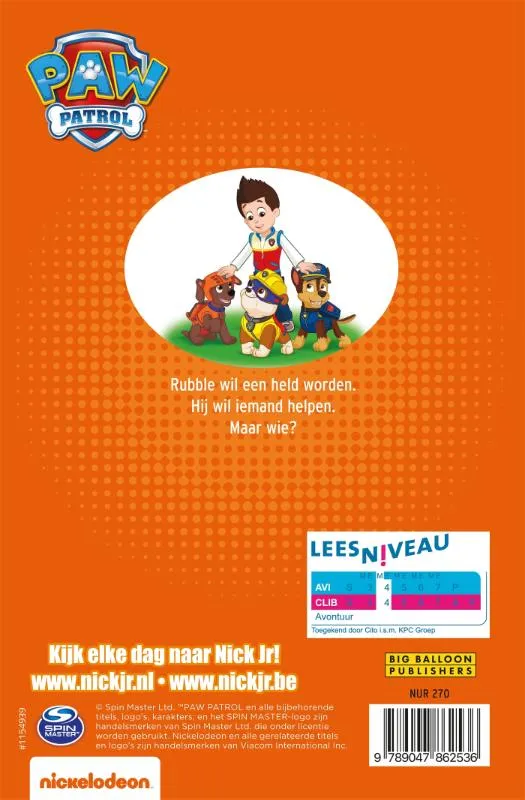 De kleine pup Rubble wil graag een dag een superheld zijn. Hij probeert iedereen in Avonturenbaai te helpen, maar dan gaat er iets mis en heeft hij zelf hulp nodig. PAW Patrol komt in actie.