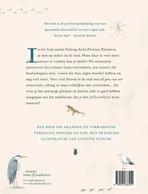 In dit boek neemt bioloog Auke-Florian Hiemstra je mee op safari in de stad. Want daar is veel meer natuur te vinden dan je denkt! We ontmoeten spreeuwen die treinen laten vertrekken, een meeuw die boodschappen doet, vissen die hun eigen deurbel hebben en nog veel meer. Voor veel dieren is de stad een ‘all you can eat’-restaurant, zolang ze maar uitkijken met oversteken… En wist je dat sommige planten en dieren zich zo goed hebben aangepast aan het stadsleven, dat je het zelfs evolutie kunt noemen?<br>