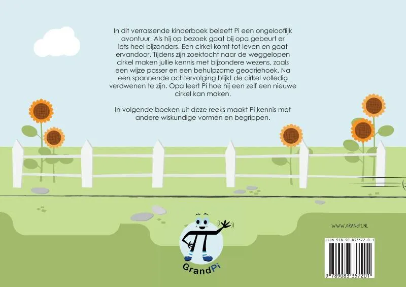 Pi moet zoeken naar een verdwenen cirkel. Maar kan hij ook zelf een nieuwe cirkel maken? Opa kan hem daar vast bij helpen. Prentenboek met illustraties in kleur. Vanaf ca. 5 jaar.