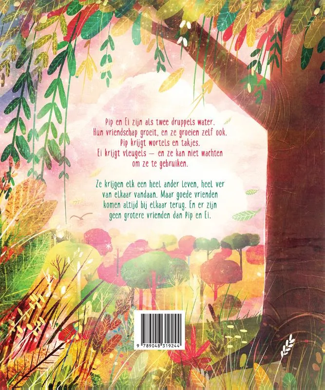 Pip en Ei zijn als twee druppels water. Hun vriendschap groeit, en ze groeien zelf ook. Pip krijgt wortels en takjes. Ei krijgt vleugels en ze kan niet wachten om ze te gebruiken. Ze krijgen elk een heel ander leven, heel ver