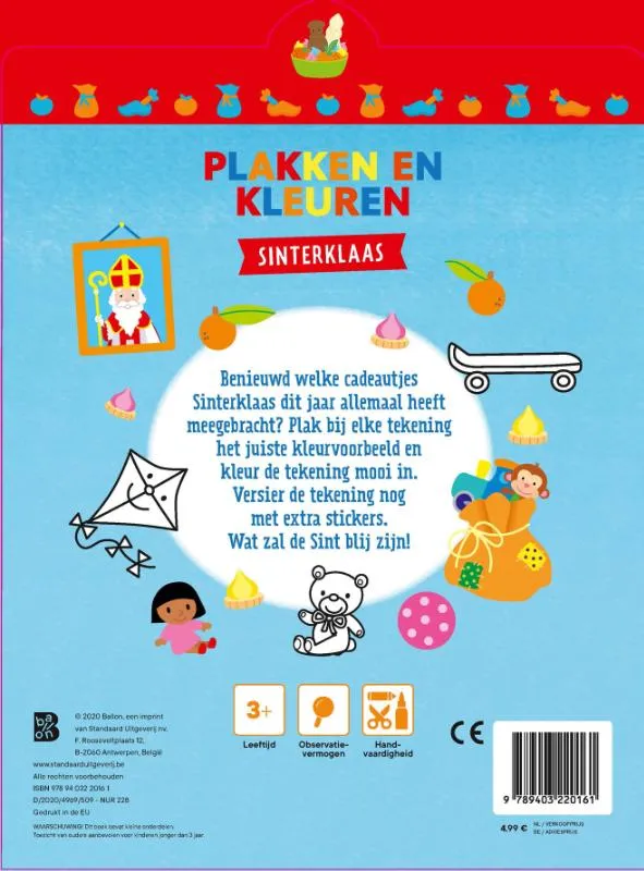 Benieuwd welke cadeautjes Sinterklaas dit jaar allemaal heeft meegebracht? Plak bij elke tekening het juiste kleurvoorbeeld en kleur de tekening mooi in. Versier de tekening nog met extra stickers. Wat zal de Sint blij zijn!