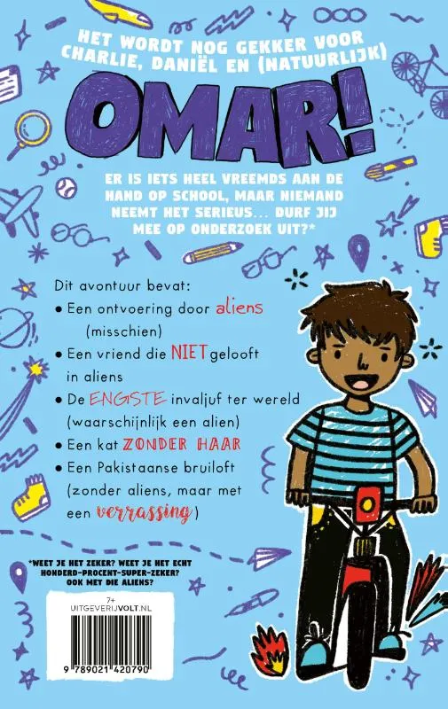 Wanneer Omar en zijn vrienden na de vakantie terug op school komen, lijkt hun lieve juf vervangen te zijn door iemand die erg knorrig is. Omar hoort andere leraren over zijn juf praten, en hij besluit dat er iets verschrikkelijks moet zijn gebeurd. Zou ze ontvoerd kunnen zijn door… aliens?!