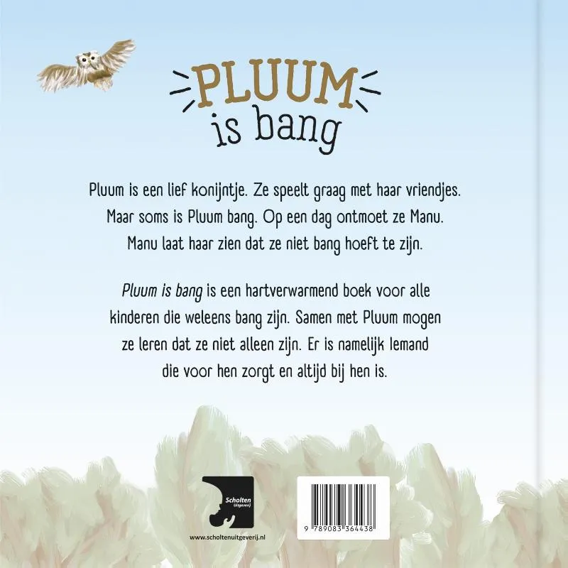 Pluum is bang is een hartverwarmend boek voor alle kinderen die weleens bang zijn. Samen met Pluum mogen ze leren dat ze niet alleen zijn. Er is namelijk Iemand die voor hen zorgt en altijd bij hen is.