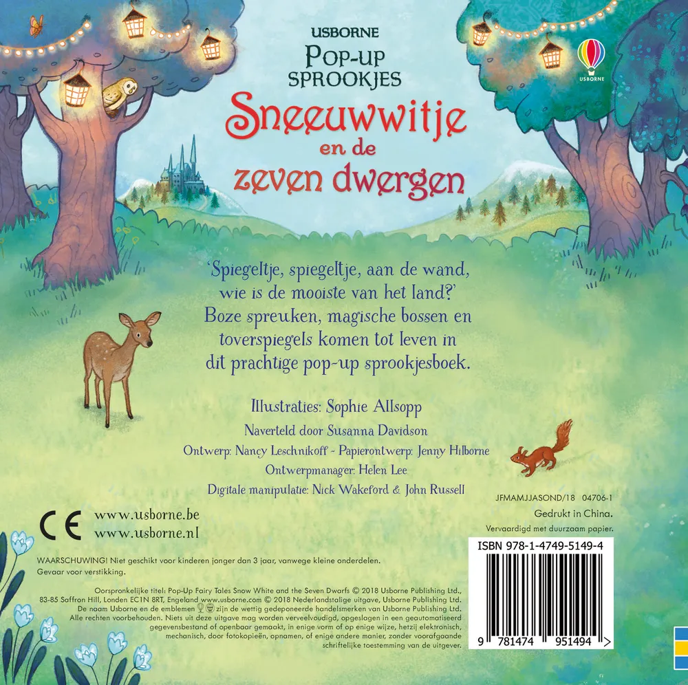 Het klassieke sprookje van Sneeuwwitje en de zeven dwergen naverteld voor jonge kinderen.Prachtig geïllustreerd met veel details en uitgekiende pop-ups, die het verhaal laten bewegen en tot leven brengen.Een verrassende versie van het klassieke sprookje, ideaal om cadeau te geven en samen te lezen.