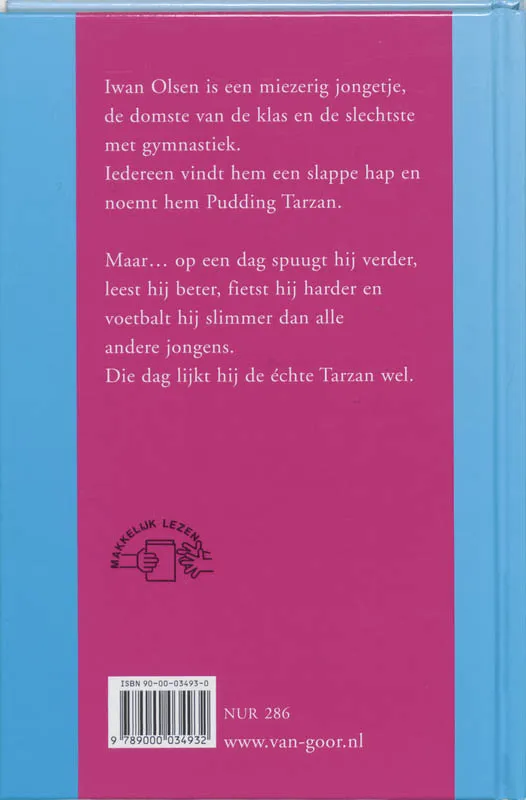 Iwan Olsen is een miezerig jongetje, de domste van de klas en de slechtste met gymnastiek. Iedereen vindt hem een slappe hap en noemt hem Pudding Tarzan.