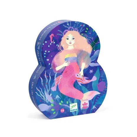 Een bijzondere puzzel in een bijzondere doos. Op deze legpuzzel van 36 stukjes staat een prachtige zeemeermin onder water.