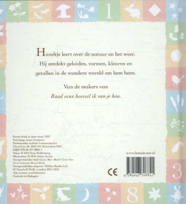 In het kartonboek ‘Kijk eens wat ik kan!’ ontdekt je dreumes samen met Hazeltje kleuren, vormen, getallen en geluiden. Hij leert de seizoenen kennen en verwondert zich over kleine beestjes. ‘Kijk eens wat ik kan!’ is het onmisbare boek om jouw kind de wondere wereld waarin hij geboren is te laten ontdekken.