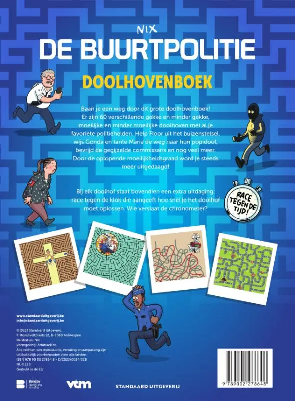 Dit grote doolhovenboek bevat allerlei verschillende gekke en minder gekke, moeilijke en minder moeilijke doolhoven met je favoriete politiehelden. Voor Buurtpolitiefans vanaf 7 jaar!
