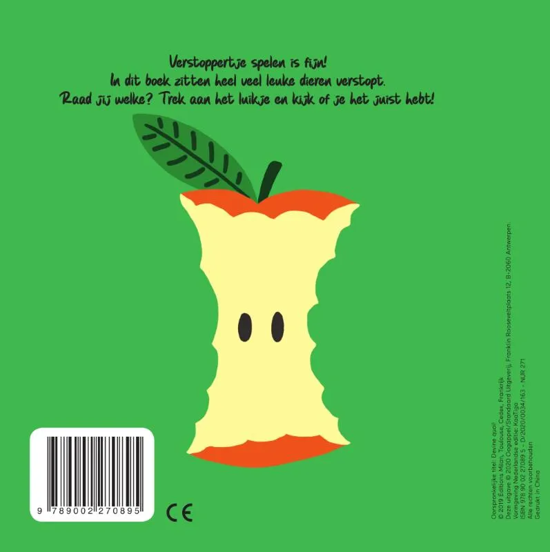 Verstoppertje spelen is fijn! In dit boek zitten heel veel leuke dieren verstopt. Raad jij welke? Trek aan het luikje en kijk of je het juist hebt!