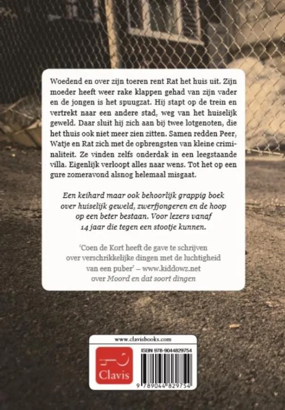 Een keihard maar ook behoorlijk grappig boek over huiselijk geweld, zwerfjongeren en de hoop op een beter bestaan. Voor lezers vanaf 14 jaar die tegen een stootje kunnen.