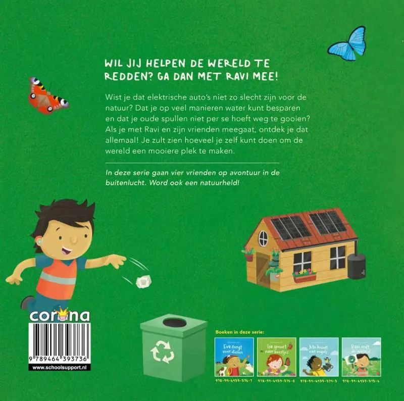 Wist je dat elektrische auto’s niet zo slecht zijn voor de natuur? Dat je op veel manieren water kunt besparen en dat je oude spullen niet per se hoeft weg te gooien? Als je met Ravi en zijn vrienden meegaat, ontdek je dat allemaal! Je zult zien hoeveel je zelf kunt doen om de wereld een mooiere plek te maken.