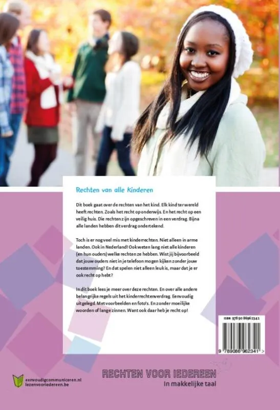 In dit boek komen veertig belangrijke kinderrechten aan bod. Ze worden beschreven en uitgelegd, omlijst door herkenbare voorbeelden en veel foto’s. Dit alles is natuurlijk zo opgeschreven dat het begrijpelijk is voor kinderen. Zonder moeilijke woorden en lange zinnen. Want ook daar hebben kinderen recht op!