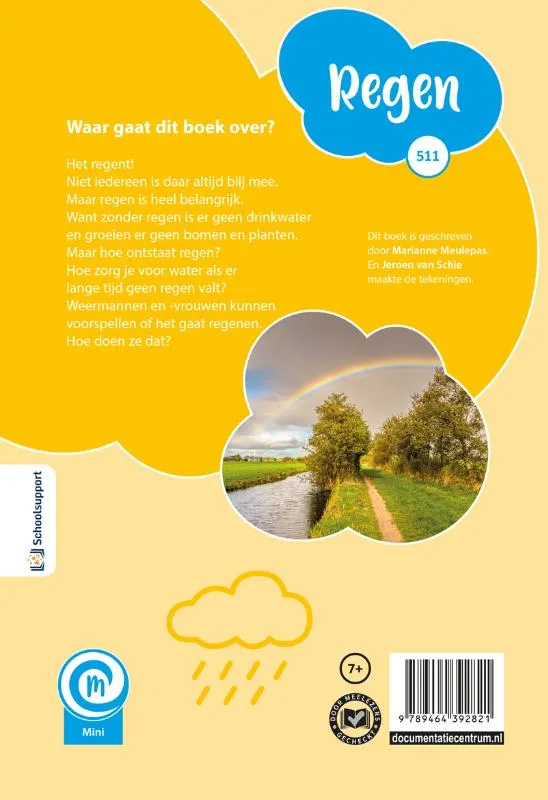 Het regent! Niet iedereen is daar altijd blij mee. Maar regen is heel belangrijk. Want zonder regen is er geen drinkwater en groeien er geen bomen en planten. Maar hoe ontstaat regen? Hoe zorg je voor water als er lange tijd geen regen valt? Weermannen en -vrouwen kunnen voorspellen of het gaat regenen. Hoe doen ze dat?