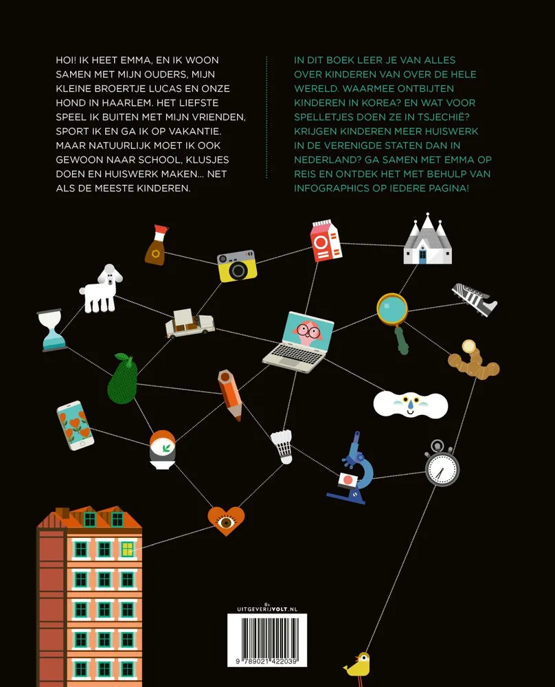 In dit boek leer je van alles over kinderen van over de hele wereld. Waarmee ontbijten kinderen in Korea? En wat voor spelletjes doen ze in Tsjechiƫ? Krijgen kinderen meer huiswerk In de Verenigde Staten dan in Nederland?