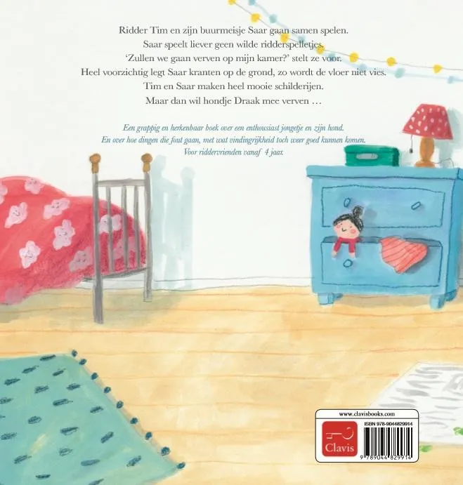 Ridder Tim en zijn buurmeisje Saar gaan samen spelen. Saar speelt liever geen wilde ridderspelletjes. ‘Zullen we gaan verven op mijn kamer?’ stelt ze voor. Heel voorzichtig legt Saar kranten op de grond, zo wordt de vloer niet vies. Tim en Saar maken heel mooie schilderijen. Maar dan wil hondje Draak mee verven …