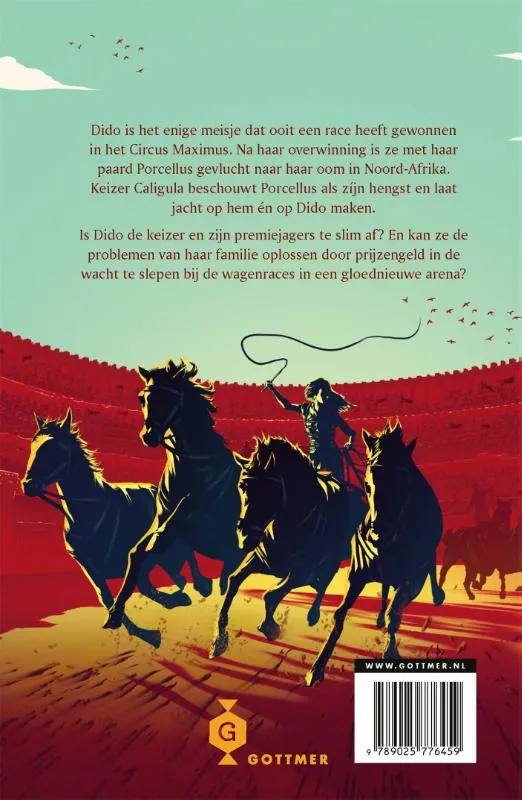 Na haar onvergetelijke race in Circus Maximus is Dido gevlucht met het beste paard uit de stal van keizer Caligula. Nu schuilt ze bij haar oom in Noord-Afrika. Maar haar oom heeft geldproblemen. In een stad verderop wordt een gigantische nieuwe arena gebouwd, waar wagenraces worden gehouden met enorme beloningen. Dido wil niets liever dan racen, maar er staat een geldprijs op haar hoofd… Lukt het haar toch om haar familie helpen? In dit bloedspannende boek waagt Dido wederom haar leven in de mannenwereld van het wagenrennen. En hoe!