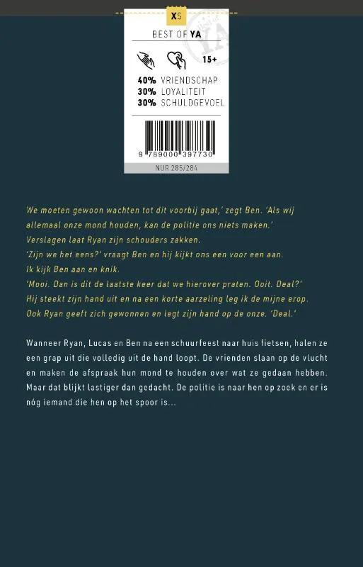 Geschrokken besluiten de jongens niets te zeggen. Maar al snel wordt duidelijk dat dit niet zo makkelijk gaat: de politie is op zoek naar de dader. En er is nóg iemand die hen zoekt – en zelfs naar het leven lijkt te staan…