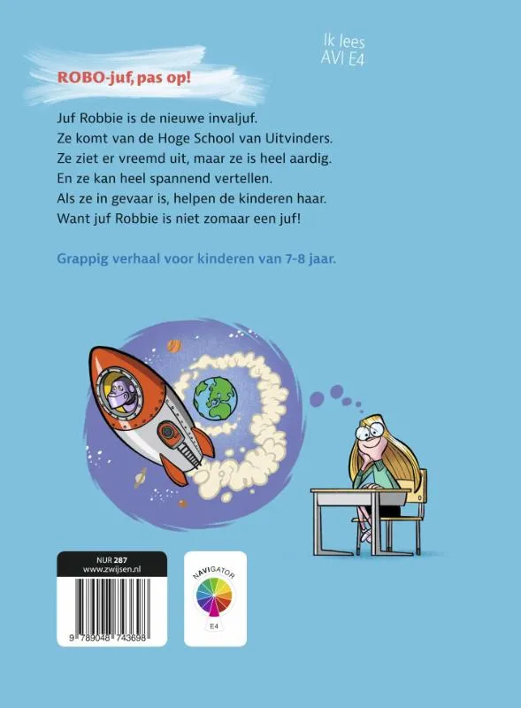 Een paars gezicht en gele ogen … invaljuf Robbie ziet er vreemd uit. En ze wordt in de gaten gehouden. Spannend boek op AVI E4 over een bijzondere juf!
