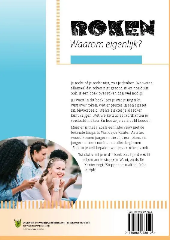 Roken, waarom eigenlijk? is een methode die door neutrale voorlichting scholieren bewust wil laten worden van de methodes van de tabakslobby en de risico’s van roken. Keurmerk Gewone Taal en daardoor ook geschikt voor jongeren met een leer en/of leesachterstand.