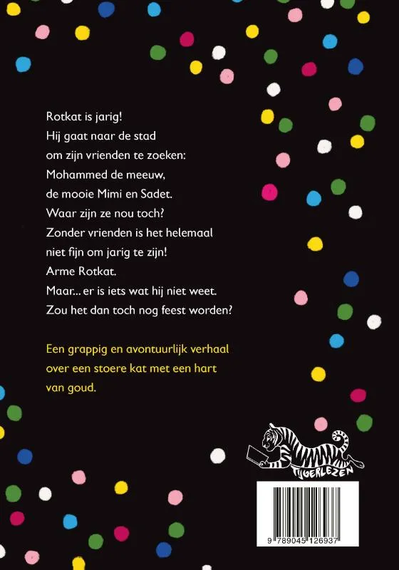 Rotkat heeft geen baasje: liever is hij vrij en blij. Vrienden heeft hij gelukkig wel, zoals de meeuw Mohammed. Maar op de dag van zijn verjaardag is zijn beste vriend nergens te bekennen. En waar zijn toch de mooie Mimi en zwerfster Sadet? Dan gaat het ook nog heel hard regenen…<br>