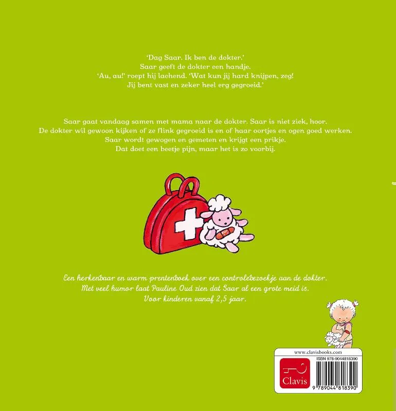 Een herkenbaar verhaal over een controlebezoek aan de dokter. Met veel humor laat Pauline Oud zien dat Saar al een grote meid is. Voor kinderen vanaf 2,5 jaar.