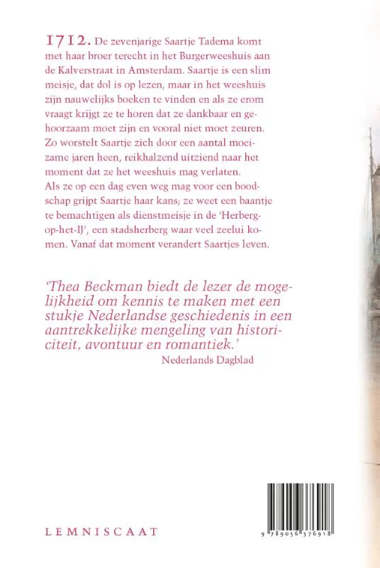 1712. De zevenjarige Saartje Tadema moet naar het Amsterdamse Burgerweeshuis. Ze is slim en houdt van leren, maar daar is in het weeshuis weinig tijd en ruimte voor.