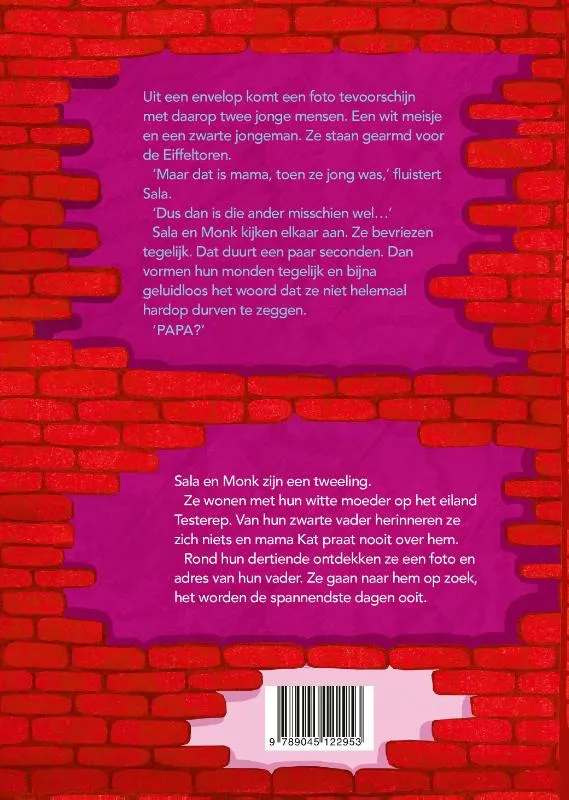 Sala en Monk zijn een tweeling. Ze wonen met hun witte moeder op het eiland Testerep. Van hun zwarte vader herinneren ze zich niets en mama Kat praat nooit over hem. Rond hun twaalfde verjaardag ontdekken ze tijdens een spannende speurtocht een foto, adres en naam van hem, en worden ze op zijn spoor gezet. Als ze hun indrukwekkende rijzige vader Salomon in de verre grote stad ontmoeten, gaan de emoties alle kanten op. Sala vliegt hem in de armen en Monk kijkt de kat nog even uit de boom. Maar Salomon is ontzettend blij eindelijk zijn twee kinderen terug te zien. Hij plant zelfs een bezoek aan het eiland Testerep.<br>