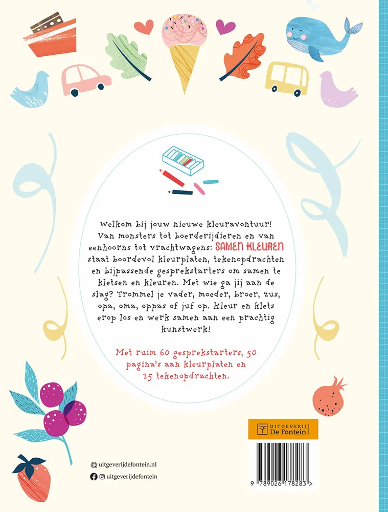 Samen kleuren staat boordevol kleurplaten om samen in te kleuren. Voer ondertussen gesprekken met behulp van 60 gespreksstarters, of werk aan 1 van de 25 tekenopdrachten. Voor iedereen vanaf 3 jaar!