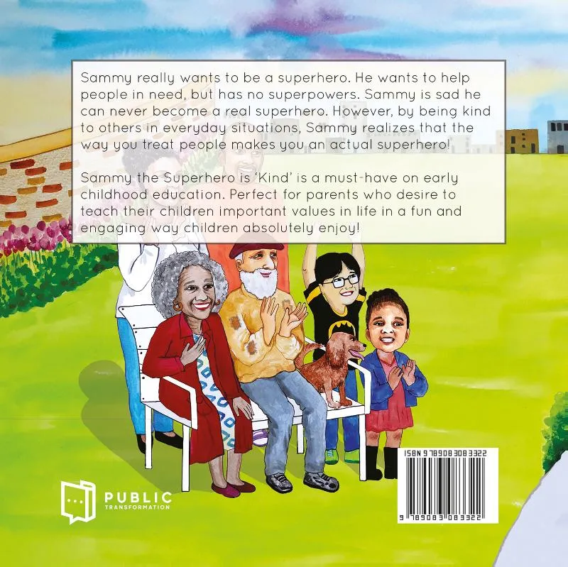 Sammy the Superhero is ‘Kind’ is een prentenboek voor ouders en onderwijzers die het belangrijk vinden kinderen op te voeden met goede waarden. In dit boek is Vriendelijkheid een Superkracht!