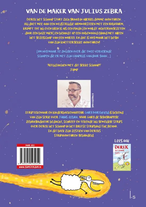 Voor Gary Northfield zebragladiator Julius Zebra bedacht, schreef en tekende hij geweldige (domme) avonturen over Derek het schaap in het beroemde Britse stripblad The Beano. In Derek het schaap – Schaap in de ruimte zijn zestien van Dereks stripavonturen gebundeld.
