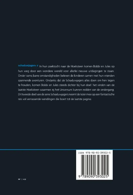 schaduwjagers 2: In hun zoektocht naar de Hoeksteen komen Bobbi en Jules op hun weg door een wondere wereld voor allerlei nieuwe uitdagingen te staan. Onder soms barre omstandigheden beleven de kinderen samen met hun vrienden spannende avonturen. Ondanks dat de Schaduwjagers alles doen om hen tegen te houden, komen Bobbi en Jules steeds dichter bij hun doel: het vinden van de laatste Hoeksteen waarmee zij het Universum kunnen redden van de ondergang.