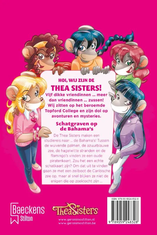 De Thea Sisters maken een studiereis naar … de Bahama’s! Tussen de wuivende palmen, de azuurblauwe zee, de hagelwitte stranden en de flamingo’s vinden ze een oude piratenkaart. Zou het een echte schatkaart zijn? Om dat uit te vinden gaan ze met een zeilboot de Caribische zee op, maar al snel blijken ze niet de enigen die op zoektocht zijn …