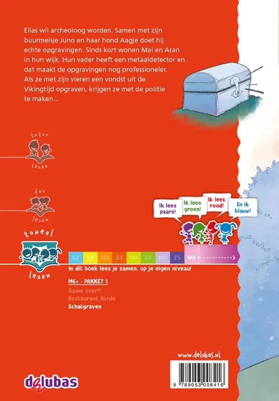 Schatgraven is een van de drie boeken uit het M6+ pakket 1 toneellezen van Uitgeverij Delubas, speciaal ontwikkeld voor toneellezen, met M6 als leesniveau voor de zwakkere lezer.