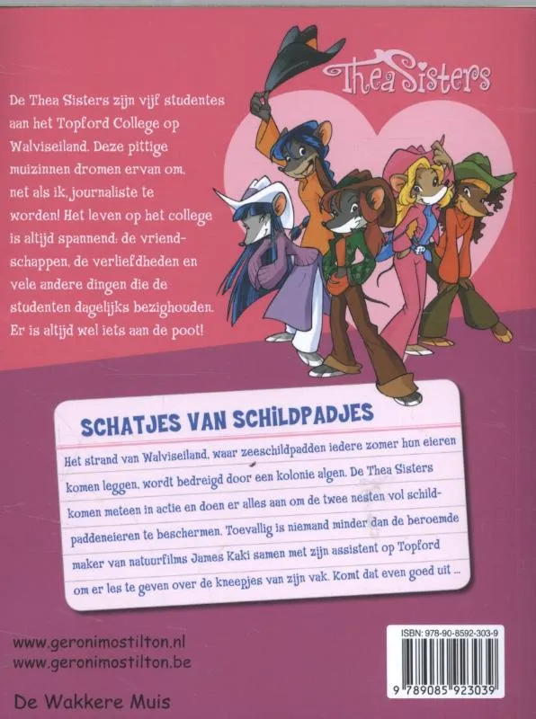 Zoals iedere zomer, komen er ook dit jaar zeeschildpadden eieren leggen op het strand van Walviseiland. Maar dan komen de Thea Sisters erachter dat het strand vol zit met algen. De muizinnen komen meteen in actie om de schildpadjes met hun leven te beschermen. Ze hadden geen beter moment kunnen uitkiezen, want niemand minder dan de wereldberoemde maker van natuurfilms James Kaki en zijn assistent zijn net op Topford aangekomen! Ze zullen de komende maanden les geven over de fijne kneepjes van hun vak. Daar hebben de Sisters wel oren naar!