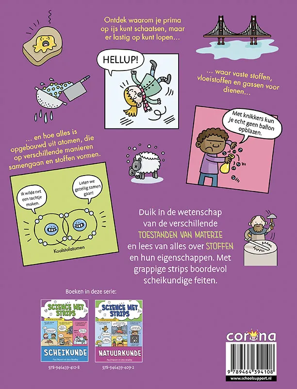 Duik in de wetenschap van de verschillende toestanden van materie en lees alles over stoffen en hun eigenschappen. Met grappige strips over scheikundige feiten.