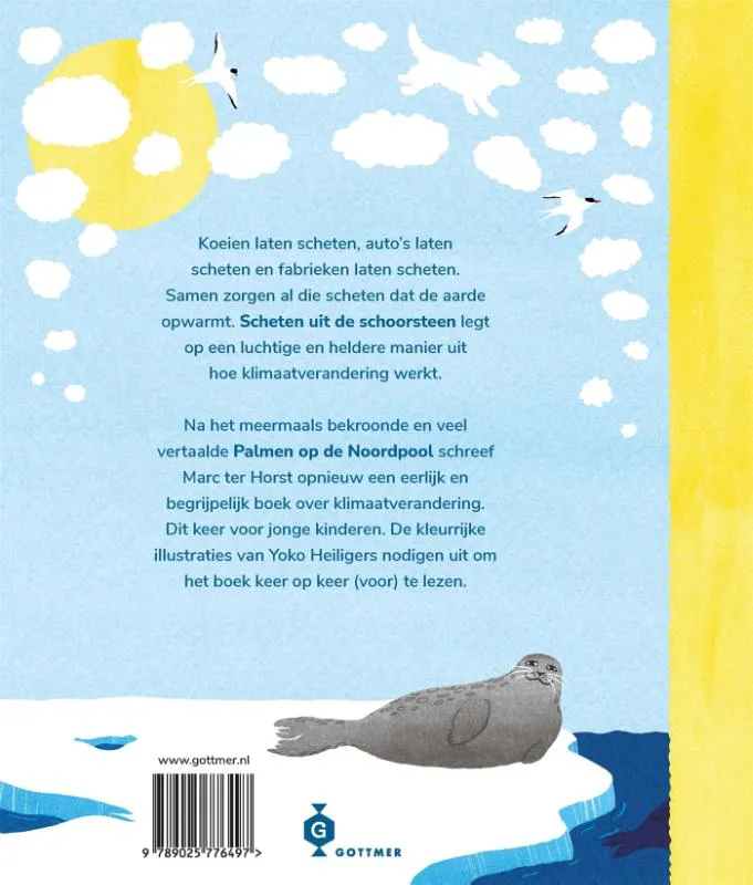 In ‘Scheten uit de schoorsteen’ legt Marc ter Horst, die inmiddels een autoriteit is op het gebied van de kindernon-fictie, op een luchtige en toegankelijke toon de klimaatverandering uit. Zijn toon is humoristisch en hoopvol, maar zonder de feiten te bagatelliseren. Daarmee is ‘Scheten uit de schoorsteen’ een verhelderend verhaal over de problemen én oplossingen voor ons klimaat, voor kinderen vanaf 5 jaar.