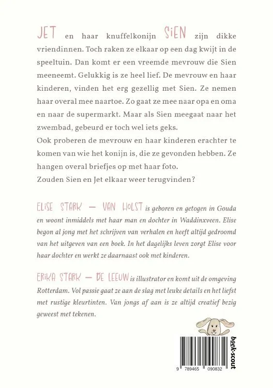 Jet en haar knuffelkonijn Sien zijn onafscheidelijk. Toch raken ze elkaar kwijt in de speeltuin. Dit verhaal is geschreven vanuit de belevingswereld van Sien, die allerlei avonturen meemaakt.
