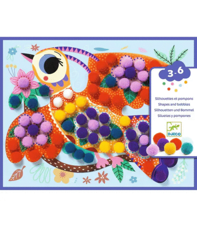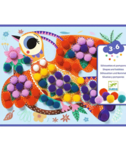 Een collage activiteit voor jonge kinderen, waarmee je drie vogels prachtig versiert met pompons. Aan de hand van de voorbeelden uit het stap voor stap boekje plakt het kind de gekleurde pompons op de zelfklevende delen van de silhouetten van de vogels.
