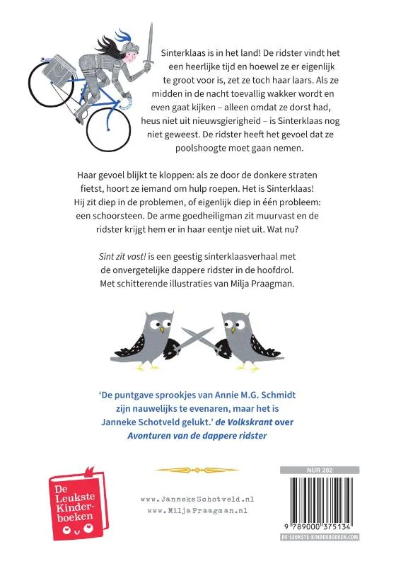 Sinterklaas is in het land! De ridster vindt het een heerlijke tijd en hoewel ze er eigenlijk te groot voor is, zet ze toch haar laars. Als ze midden in de nacht toevallig wakker wordt en even gaat kijken – alleen omdat ze dorst had, heus niet uit nieuwsgierigheid – is Sinterklaas nog niet geweest. De ridster heeft het gevoel dat ze poolshoogte moet gaan nemen.<br><br>Haar gevoel blijkt te kloppen: als ze door de donkere straten fietst, hoort ze iemand om hulp roepen. Het is Sinterklaas! Hij zit diep in de problemen, of eigenlijk diep in één probleem: een schoorsteen. De arme goedheiligman zit muurvast en de ridster krijgt hem er in haar eentje niet uit. Wat nu?<br><br>Sint zit vast is een geestig sinterklaasverhaal om voor te lezen vanaf 6 jaar of zelf te lezen vanaf 8 jaar. Zilveren Penseel-winnares Milja Praagman maakte de schitterende winterse illustraties.<br><br>