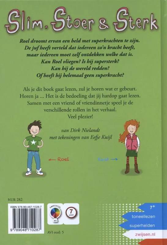 Roel droomt ervan om een held met superkrachten te zijn. De juf heeft verteld dat iedereen zo’n kracht heeft, maar iedereen moet zelf ontdekken welke dat is. Kan Roel vliegen? Is hij supersterk? Kan hij de wereld redden? Of heeft hij helemaal geen superkracht? Als je dit boek gaat lezen, zul je horen wat er gebeurt. Horen, ja … Dit is een Toneelleesboek. De teksten lees je samen hardop. Kies wie je wilt zijn en lees dan om de beurt je rol.