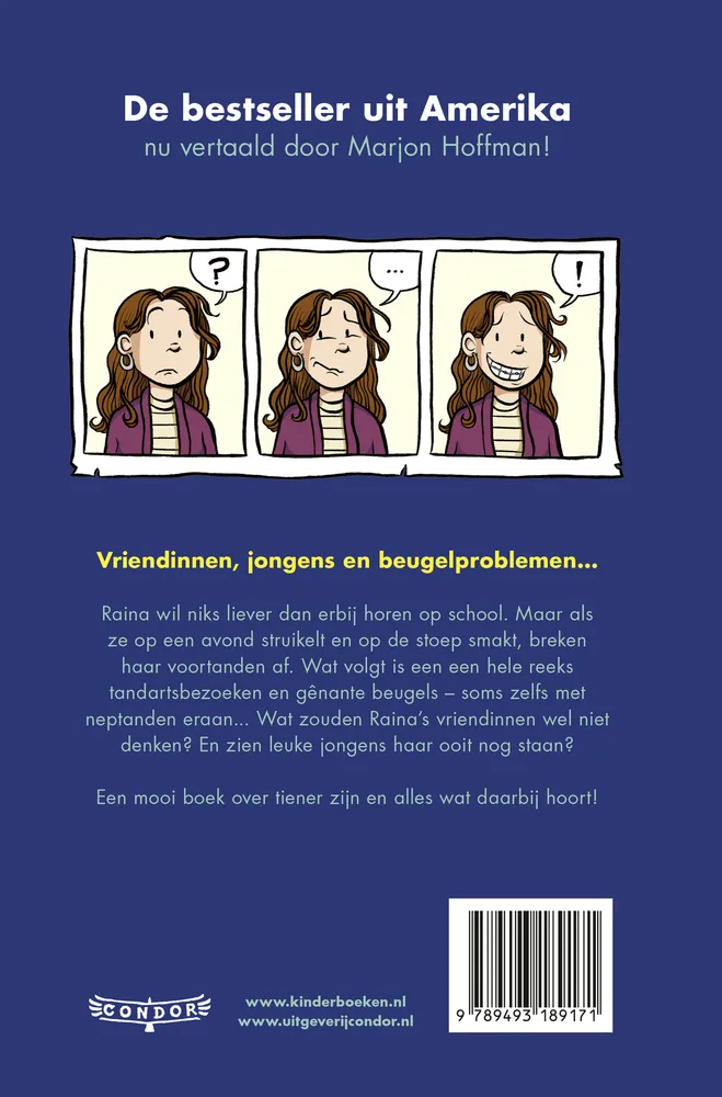 Na een lelijke val heeft Raina haar voortanden ernstig beschadigd. Wat volgt is een lang en frustrerend proces vol tandartsbezoeken, operaties en gênante beugels – soms zelfs met neptanden… Wat zouden Raina’s vriendinnen wel niet denken? En zien leuke jongens haar ooit nog staan?<br>