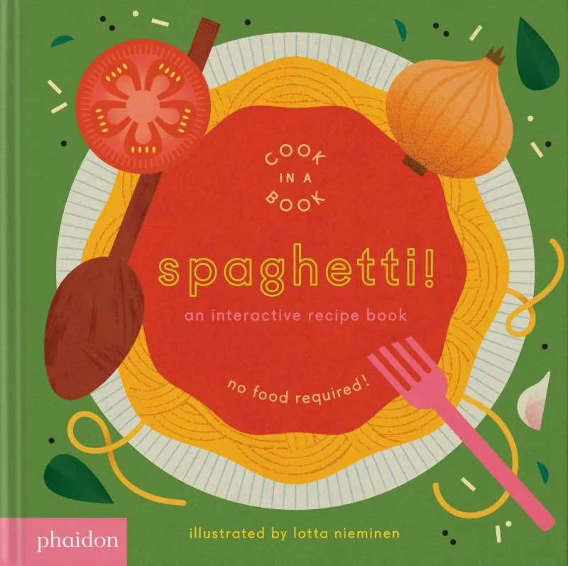 A simple but accurate recipe takes young readers through the steps of cooking spaghetti, from chopping onions to serving up a plate of steaming hot pasta with tomato sauce, while the interactive novelty features invite them to participate in the process … without any chance of spilling anything. Move the tab up and down to add the onions and garlic, lift the flap to open the can of tomatoes, pull the tab to bring the water to a boil, use the punch-out fork to twist some spaghetti onto your fork to taste, and more. One hundred percent adult-free, danger-free, and mess-free – whether you are cooking outside or inside this book, spaghetti has never been so independent!