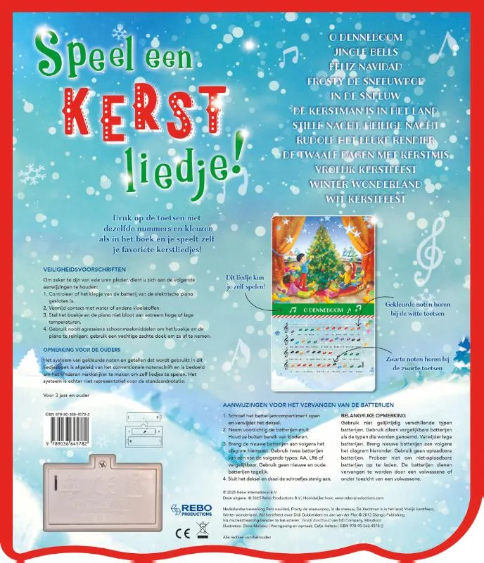 Druk op de toetsen met dezelfde nummers en kleuren als in het boek en je speelt zelf je favoriete kerstliedjes!<br><br> Speel en zing 12 populaire kerstliedjes: ‘O denneboom’, ‘Jingle Bells’, ‘Feliz Navidad’, ‘Frosty de sneeuwpop’, ‘In de sneeuw’, De Kerstman is in het land’, ‘Stille nacht, heilige nacht’, ‘Rudolf het leuke rendier’, ‘De twaalf dagen met Kerstmis’, ‘Vrolijk kerstfeest’, ‘Winter wonderland’, ‘Wit kerstfeest’.